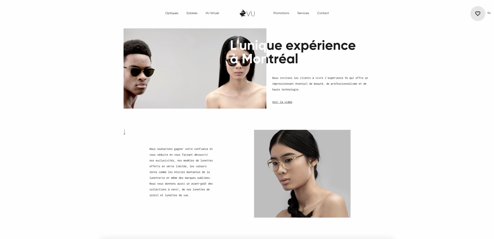 <p>VU offre des services d'optométrie et une collection unique et tendance de lunettes de vue et lunettes de soleil pour femmes et pour hommes.</p>