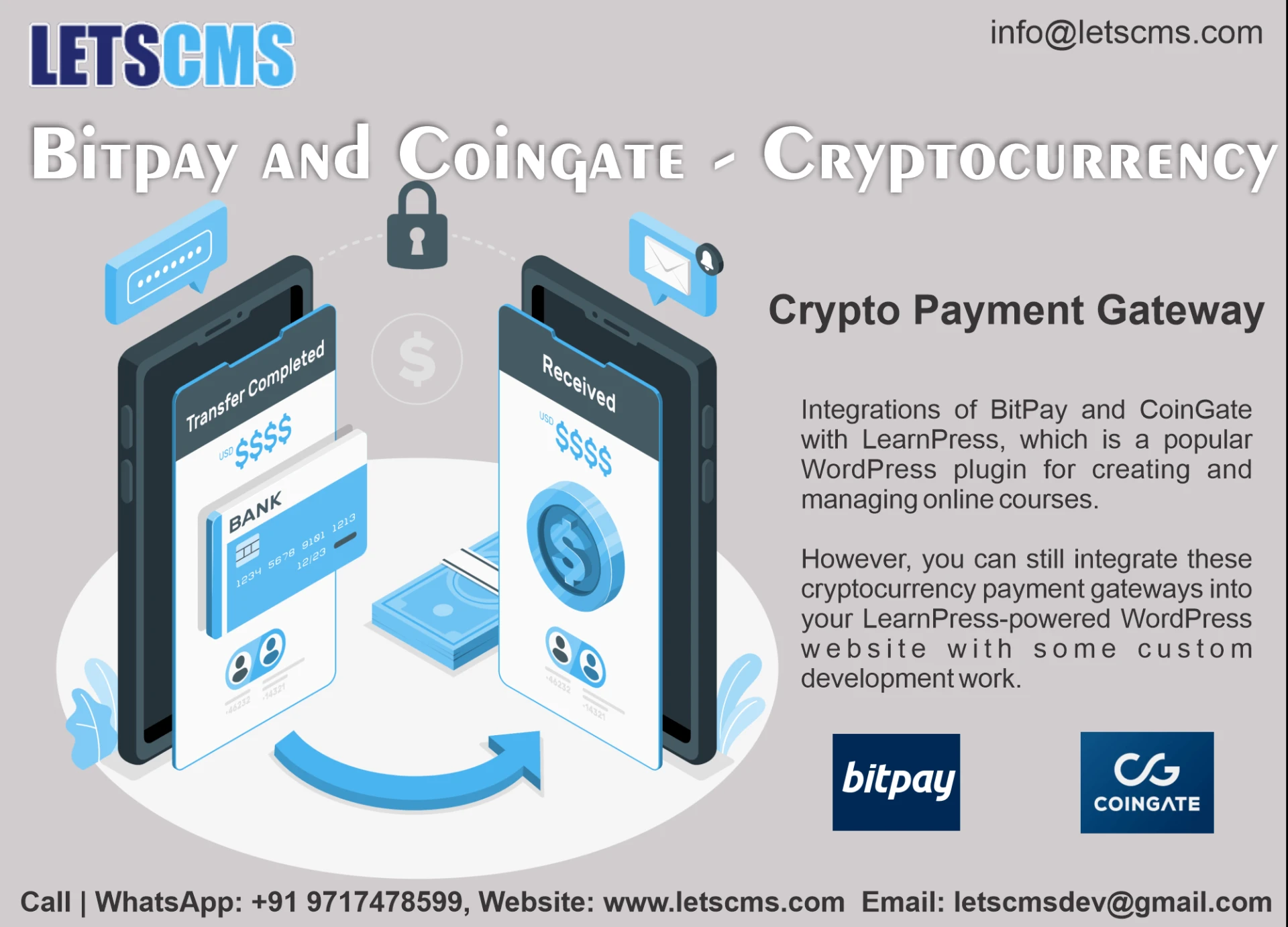 CoinGate and Bitpay for Cryptocurrency payment gateways in Bitcoin with LearnPress