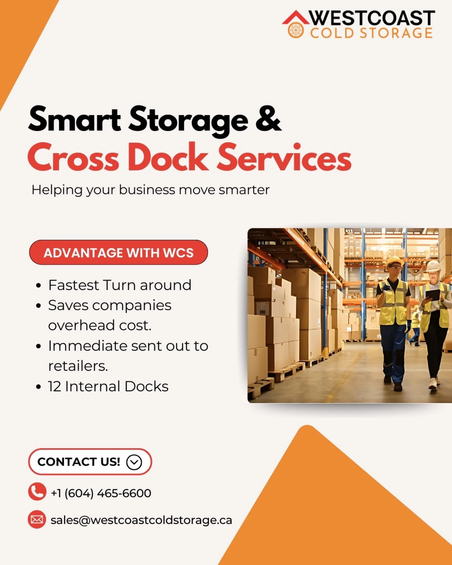 West Coast Cold Storage (WCS) offers a 120,000 sq. ft. state-of-the-art facility near Vancouver, designed to scale your business with flexible warehou